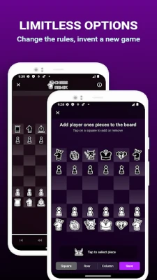 Amma Chess Remix ya wuce wasanni na gargajiya kawai. Yana ba ku damar kirkirar dokokin ku, ku sake fasalta yadda kuke wasa da gaske. Kuna so ku gwada Crazyhouse, Atomic, ko 960? Ko kuma ku kafa dokokin ku na musamman kamar King of the Hill ko Forced Capture? Tare da mafi ingancin mai kirkirar wasannin Chess, ku ba da ikon musamman ga guntayen wasanku, ku saka hali na daban a kowane akwati na allo, sannan ku raba abubuwan da kuka kirkira tare da abokai da sauran 'yan wasa. Wannan shine damar ku ta ƙirƙira babban wasan allo na gaba.