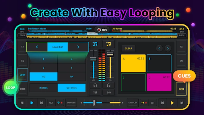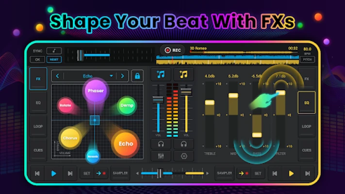 Tare da "DJ Music Mixer - virtual DJ Remix Studio", zaka iya ji kamar babban DJ na duniya, kana haɗa da kuma karce waƙoƙinka da fasaha. Tana nuna saurin BPM a ainihin lokacin, tana baka damar sarrafa sautin waƙoƙi daidai ta amfani da EQ mataki goma daga 31 Hz zuwa 16 kHz. Akwai nau'ikan da'irar sauti guda 14 (loop modes) daga 1/64 zuwa 128 beats, da kuma damar saita wurare masu zafi (hotspots) har guda shida don saurin komawa ga sassan da ka fi so. Ba'a mantawa da crossfader wanda ke sauya kiɗa a hankali ba, da kuma fakitin samfurori guda 27 masu kyauta, ciki har da Beat, Applause, Boing, Clap, Drums, Scratch da sauransu, don ƙara ɗanɗano na musamman ga haɗin gwaninka.