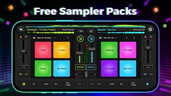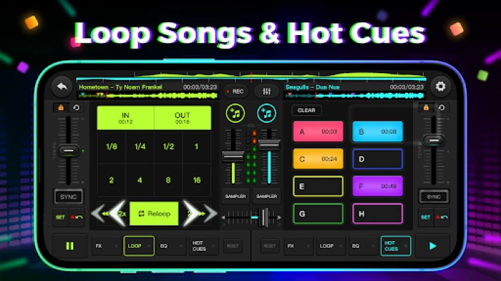 Rythmix DJ - DJ Mixer wani ma'ajin DJ ne na gaskiya kuma mai haɗa kiɗa mai tasirin sauti, Equalizer da Bass Booster. Haɗa waƙoƙi, ƙirƙira kiɗa da rikodin haɗe-haɗe. Da Rythmix DJ - DJ Mixer, sauƙaƙe ƙirƙira da daidaita haɗin kiɗanka da kayan aikin haɗawa masu ƙarfi.