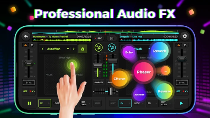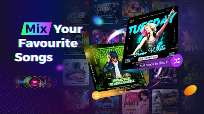 Rythmix DJ ya zo da keɓaɓɓiyar fuska mai sauƙin fahimta, tana ba da damar kowa ya fara haɗa waƙoƙi da ƙirƙirar sauti na musamman ba tare da wahala ba. Ji daɗin yin wasa da na'urorin juya kiɗa na gani (virtual turntables) waɗanda ke ba ka damar goge-goge, haɗa, da sanya sautuka su gudana a hankali. Daidaita matakan sauti da saitunan sauti (EQ) tare da sarrafa fiffiya (crossfader) don sauya tsakanin waƙoƙi ba tare da katsewa ba. Bincika ɗakin karatu na kiɗan ka ko zaɓi daga tarin waƙoƙi masu yawa don gina jerin waƙoƙin DJ ɗinka. Cika waƙoƙinka da tasirin sauti iri-iri kamar reverb, delay, flanger, da kuma tacewa don siffanta sauti da ba shi tabawa ta musamman. Haka kuma, za ka iya gwada yin sake-haɗa sauti (remixing) ta hanyar amfani da madaukai (loops) da samfuran sauti don ƙirƙirar sabbin kide-kide a take.