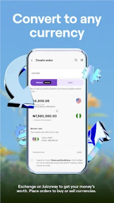 Baya ga haka, sauya kuɗaɗe bai taɓa zama mai sauƙi ba. Tare da Juicyway, zaka iya sauya kuɗi tsakanin nau'o'i daban-daban a kan farashin gasa, ko ma ka saita naka farashin don cikakken iko. Wannan yana ba ka damar biya kamar ɗan gida a kowace ƙasa, yana kauce wa ƙarin kuɗin da ba dole ba kuma yana tabbatar da ma'amaloli masu santsi. Mu a Juicyway mun sadaukar da kai ga bayyanar da komai; babu ɓoyayyun kuɗi. Dashboard ɗinka guda ɗaya zai nuna maka cikakken bayani kan duk ayyukanka na kuɗi, yana ba ka cikakken iko da fahimta.