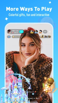 Baya ga kallo da hulɗa, Niki Live kuma dandali ne da zai ba ka damar zama tauraro. Ka baje kolin basirar ka ta hanyar bidiyo masu gajeren lokaci ko ta hanyar shiga kai tsaye, ka raba hotuna da VLOGs a sashin "Moments" don jawo hankalin masoya. Yi amfani da kayan ado na zamani da matatun kyau don sanya kowane shiri na ka ya fice. Kuma idan kana son nuna jin kaɗan ga masu gabatarwa, akwai kyaututtuka na musamman iri-iri da zaka iya zaɓa. Niki Live yana shirya abubuwan nishadi na musamman akai-akai don ƙara yawan abubuwan da zaka ji daɗi, yana samar maka da damammaki marasa adadi na farin ciki da sabbin abubuwan ban sha'awa.
