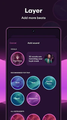 Kirkiri wakoki da sauƙi ta amfani da sauti sama da miliyan 11 daga mawakan duniya. Zame tsakanin bugu, kayan kida, da nau'ikan wakoki don tsara abin da kake so. Fara da muryar mai fasaha ko naka, sannan ka gina shi mataki-mataki. Raba cikin sauri ko fitar da shi da inganci mai cike.